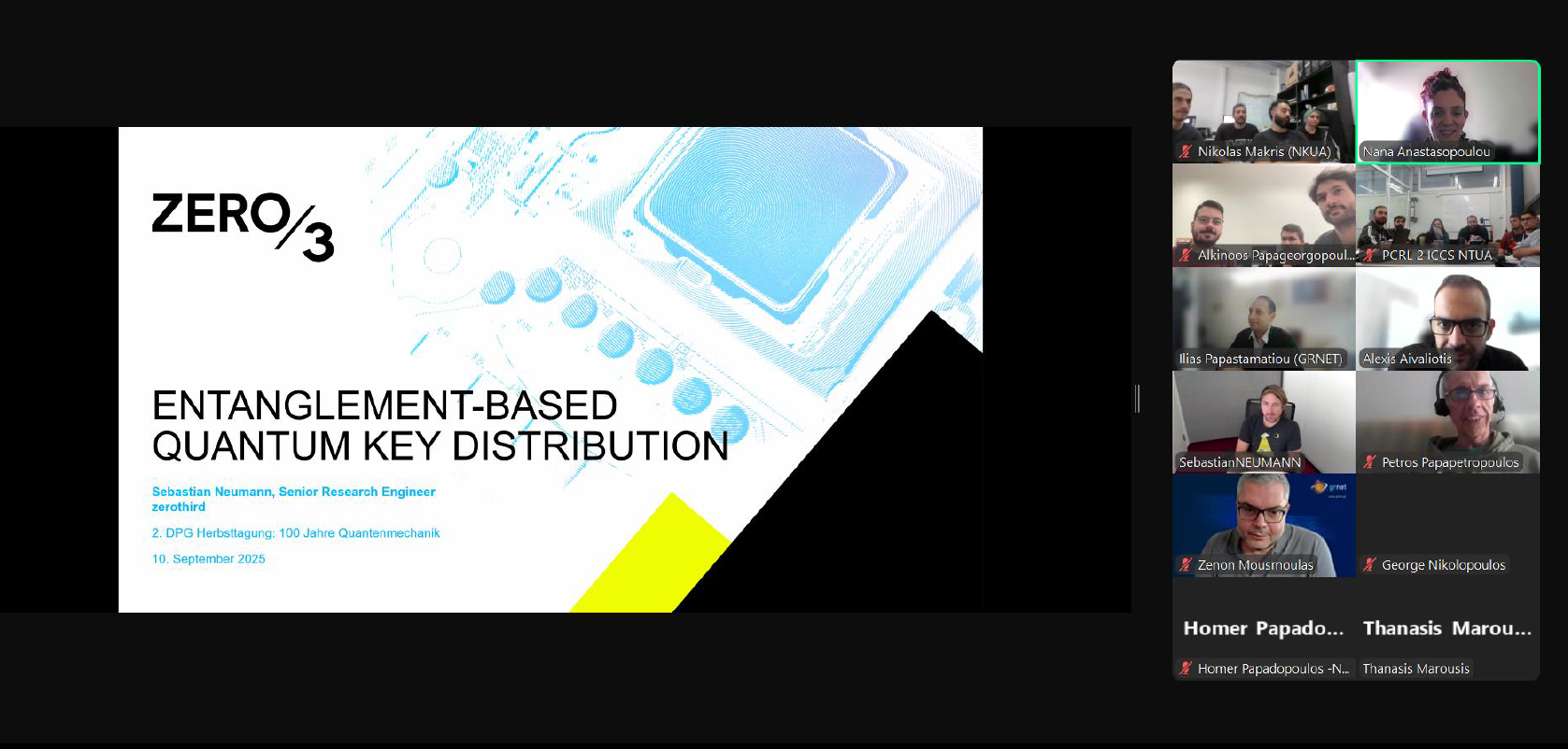 On 22 October 2025, as part of the procurement and installation activities for the EPPS systems—which support experiments on the generation, distribution, and detection of entangled photons during the use-case testing phase of the national quantum infrastructure network HellasQCI—the consortium organised and participated in an online training session on EPPS operation, maintenance, and capabilities. The training was delivered by Zerothird, a company specialising in next-generation quantum cryptography and specifically Quantum Key Distribution (QKD) based on entangled photons.
